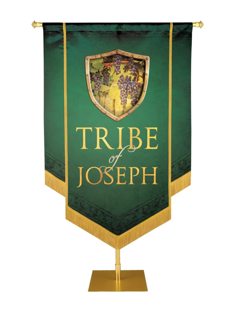 Joseph’s banner is often represented by a fruitful vine or a bunch of grapes, signifying blessings and prosperity. Joseph is known for his rise to power in Egypt and his role in providing for his family during famine. This banner embodies the themes of abundance, resilience, and the idea of overcoming adversity.