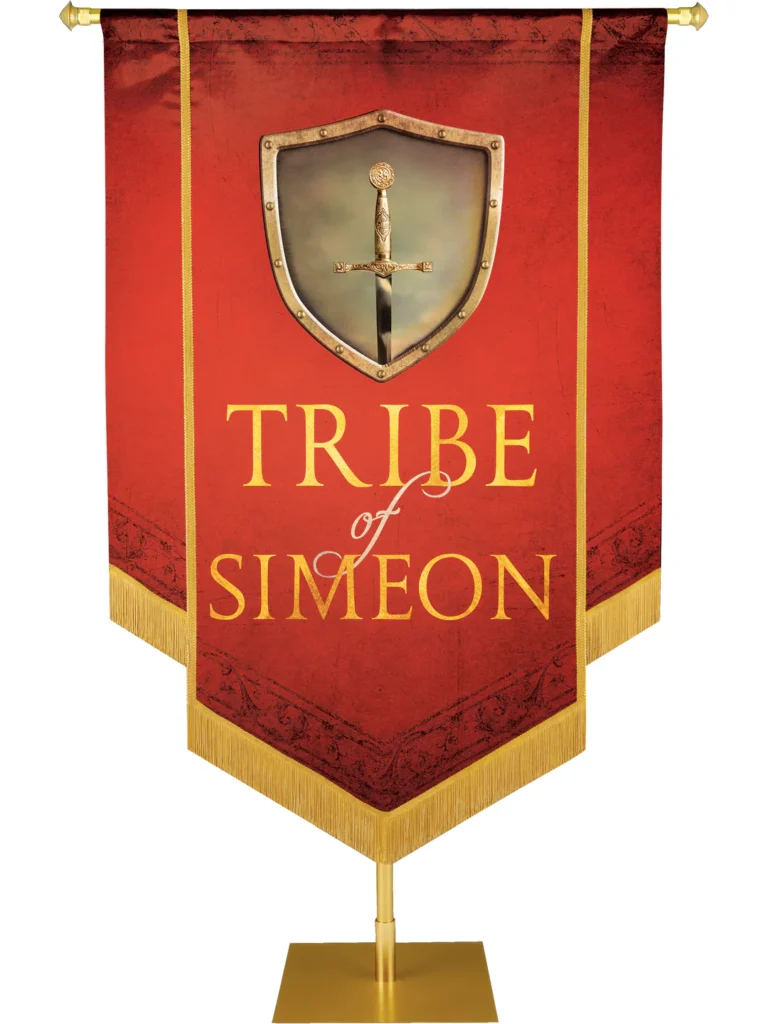 Simeon’s banner is often depicted with a sword, representing his fierce nature and warrior spirit. Simeon, along with his brother Levi, avenged the dishonor done to their sister Dinah, which showcased their readiness to defend their family’s honor. This banner embodies the themes of justice and vengeance, reflecting the tribe’s reputation for being fierce and unyielding.